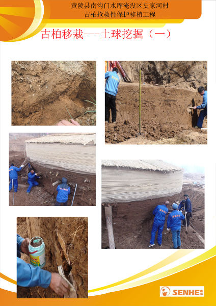 圖為我公司曾進(jìn)行的黃陵縣南溝門水庫(kù)淹沒區(qū)史家河村古柏?fù)尵刃员Wo(hù)移栽工程