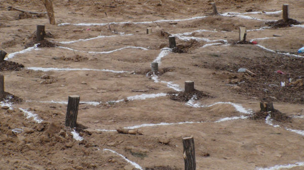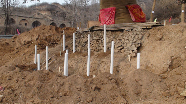 移植前布設(shè)復(fù)壯孔,強壯樹勢。(2009年)